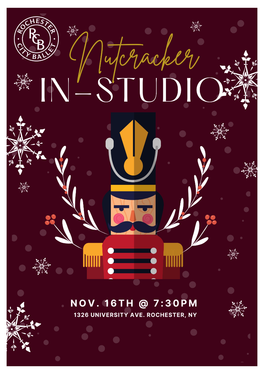 See the rehearsal process up close, in our own studio, and get a behind-the-scenes look at how the Rochester City Ballet dancers and community dancers prepare for our annual show of "The Nutcracker".